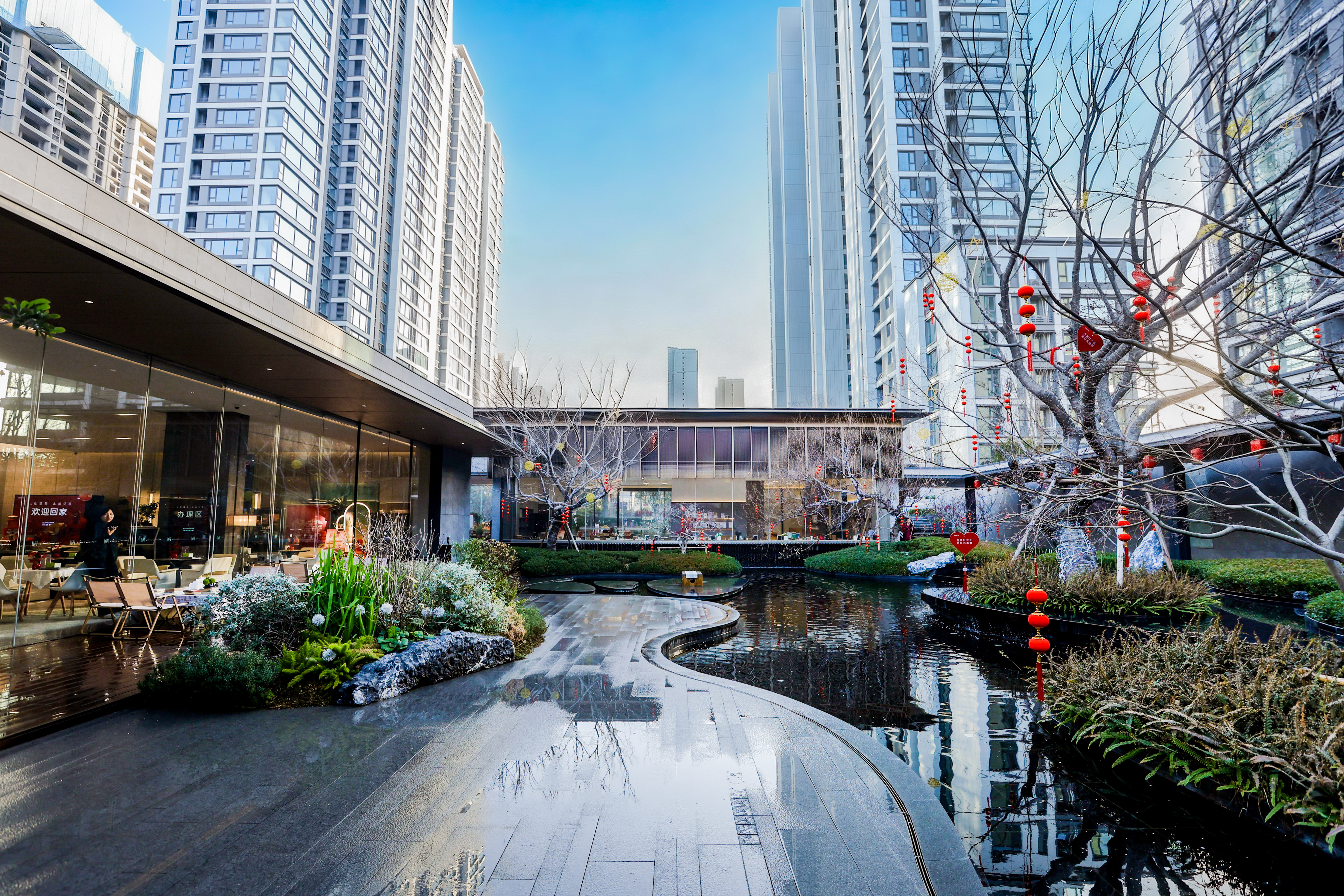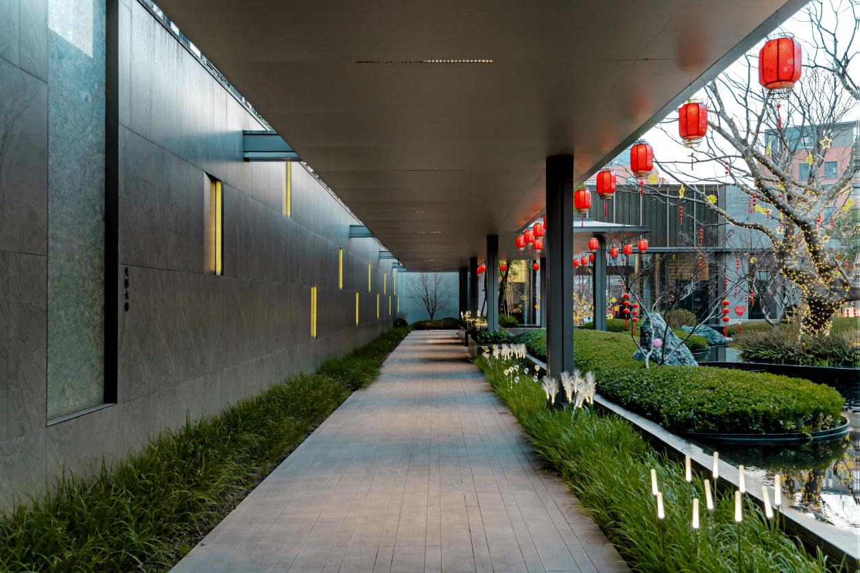 万科·民安 雲河锦上的场景灵魂在于——以“摩登东方”的设计语言,将社区塑造成“都市中的度假岛屿”。
