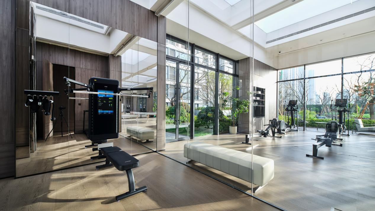 在“运动盒子”中,大面积通透的落地窗将庭院的四季光影引入,业主可轻量燃脂、暴汗拳击、快乐组局(羽毛球/匹克球/网球),家楼下轻松运动。